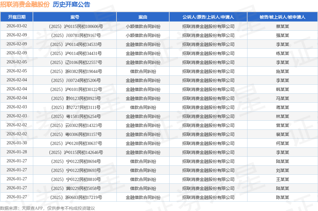 证券之星消息,根据天眼查APP显示,近日公布了一则招联消费金融股份有限公司作为原告/上诉人的开庭公告,详细内容如下: